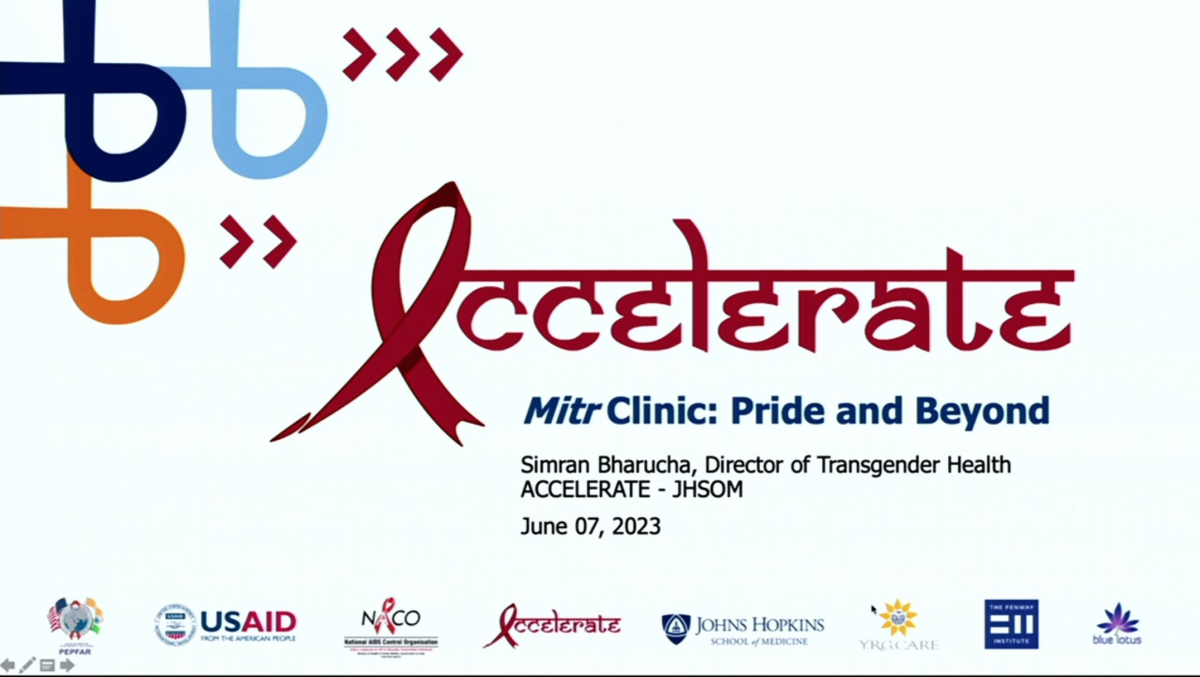 Simran Bharucha, Director of Transgender Health for Project ACCELERATE, led discussion about India's first comprehensive clinic the for the Transgender Community and screened the documentary "Mitr Clinic - Pride and Beyond." Honored presenters included Dr. Sunil Solomon, Dr. Shruti Mehta, Dr. Helene Hedian, and Dr. Stephen Gange. Please enjoy the recording of the event and its celebration of expanding services for communities in need.
